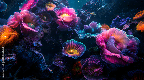 Vibrant Coral Reef Underwater Scene with Colorful Anemones