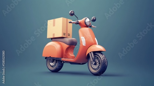 Vibrant coral scooter with delivery box against a serene teal backdrop