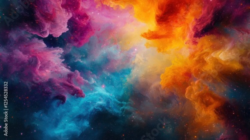Vibrant Cosmic Cloudscape with Colorful Swirls and Stars