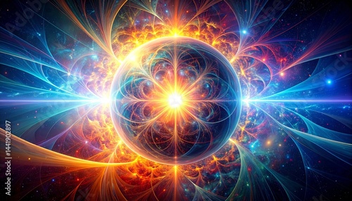 Vibrant Cosmic Energy Sphere Abstract Background Glowing Nebula with Bright Light Rays