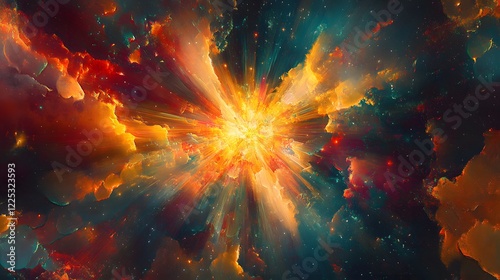 Vibrant Cosmic Explosion with Colorful Nebula and Bright Rays