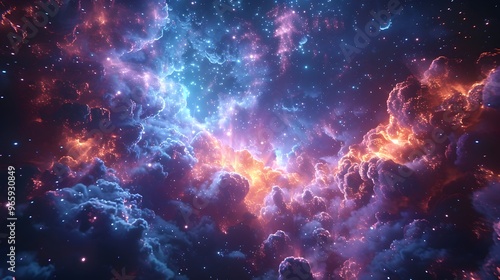 Vibrant Cosmic Nebula Explosion in Starry Galaxy Universe Background