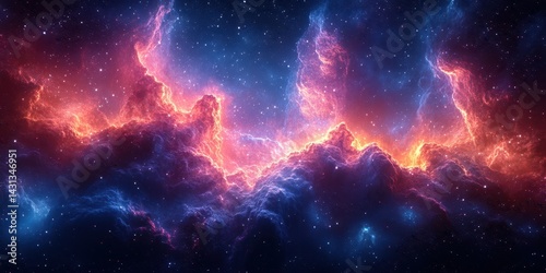 Vibrant cosmic nebula illuminated by shades of orange, pink, and blue in a starry galaxy backdrop