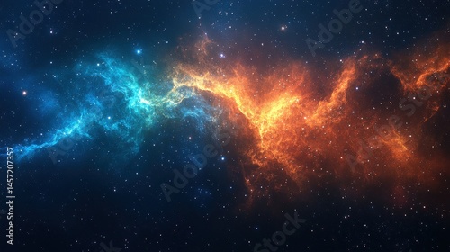 Vibrant cosmic nebula with blue and orange clouds in deep space