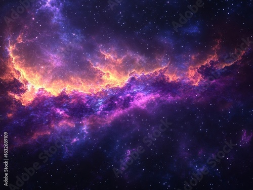 Vibrant Cosmic Nebula with Fiery Colors and Starry Background