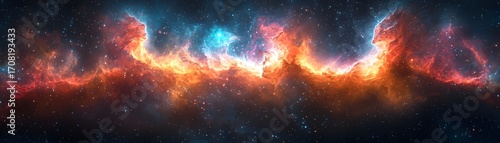 Vibrant cosmic nebula with swirling colors and distant stars forming an ic space background