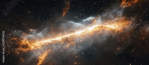 Vibrant cosmic nebula with swirling orange and gray clouds against a starry night sky, showcasing the mysteries of space travel and science.
