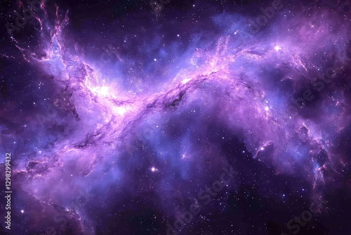 Vibrant cosmic nebula with swirling purple and blue hues, set against a backdrop of stars