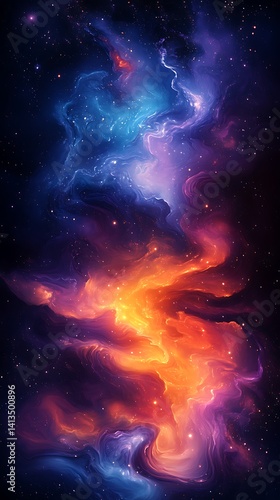 Vibrant Cosmic Phone Wallpaper – Swirling Blue, Purple & Orange Nebula | HD Vertical Deep Space Aesthetic Background