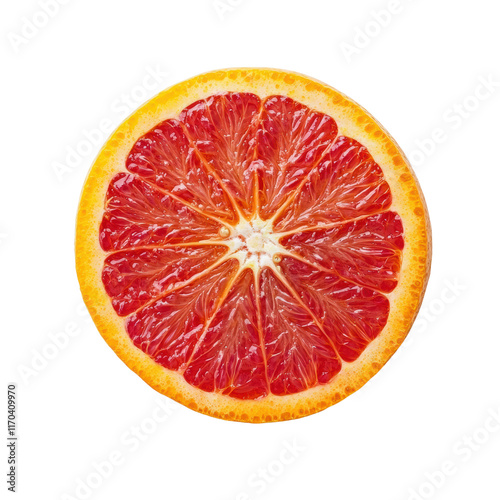 Vibrant cross-section of a blood orange on a black background