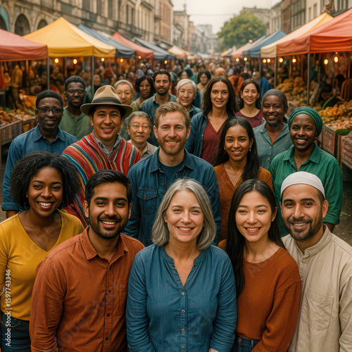 Vibrant Crowd Gathering at a Bustling Marketplace Ideal for Diverse Campaigns, Inspiring Unity and Community Spirit.