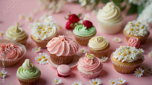 Vibrant dessert spread with cupcakes and pastries