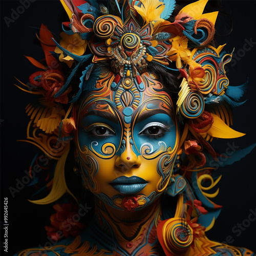 Vibrant Digital Art Futuristic Face Design in Abstract Colors and Intricate Patterns