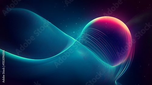 Vibrant Digital Painting: Abstract Sphere Gently Swirling in Cosmic Darkness. AI Generated