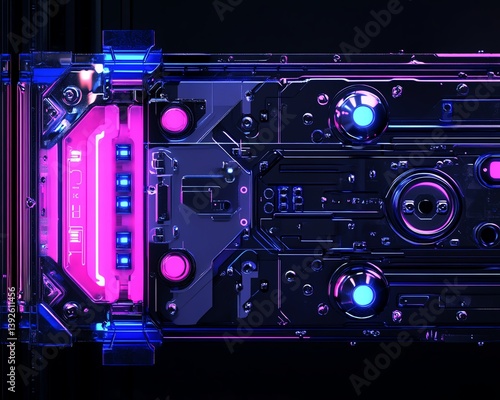 Vibrant digital security lock with blue and pink circuitry on a sleek black background, representing cybersecurity and advanced data protection