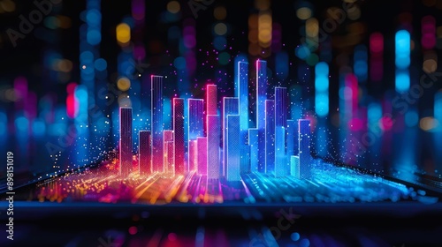 Vibrant digital sound waves displayed in colorful bars, reflecting technology and creativity in a modern, abstract design.