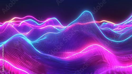 Vibrant digital waves in neon colors create a dynamic, futuristic landscape with a smooth, flowing appearance.