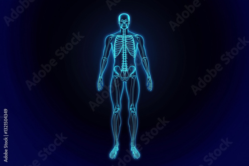 vibrant digital X-ray illustration of the human skeletal system, presented in a futuristic and artistic style.