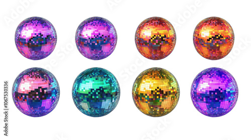Vibrant Disco Balls Collection in Shiny Colorful Designs Generative AI