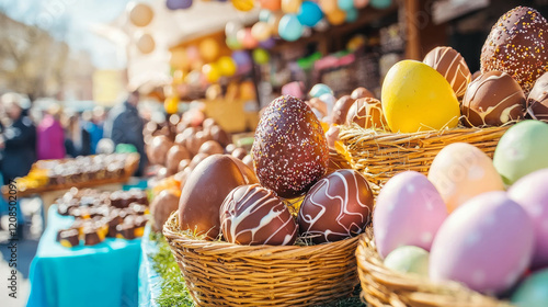 Vibrant Easter Market with Colorful Stalls and Decorative Eggs. Concept of Festive Celebration, Spring Traditions, Community Gatherings
