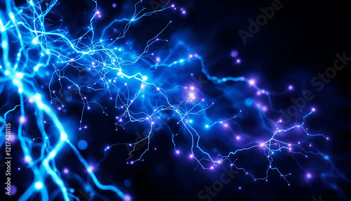 Vibrant electric blue energy flow with intricate patterns illuminating dark background at dusk