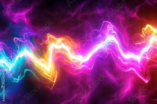 Vibrant electric waves illuminate a dark background with dynamic colors