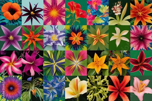 Vibrant Exotic Flower Collage Art with Kaleidoscopic Colors and Patterns