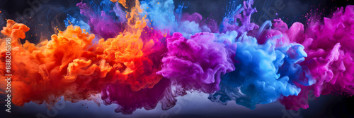 Vibrant Explosion of Colorful Ink in Water and Smoky Background