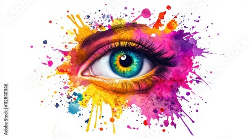 Vibrant Eye Illustration with Colorful Splash and Artistic Brush Effects, Representing Creativity, Perception, and Imagination in Bold Colors and Artistic Expression
