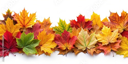Vibrant fall leaves isolated on white background, autumn, foliage, seasonal, nature, colorful, orange, red, yellow