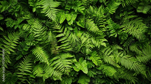Vibrant ferns covering the forest floor in a lush temperate rainforest ecosystem
