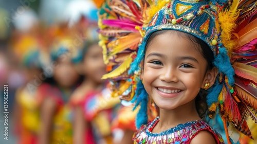 Vibrant Festival Costume with Colorful Feathers and Bright Smiles