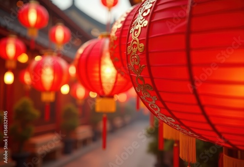 vibrant festive red lanterns elegant gold accents decorative display celebration, decoration, light, ornament, bright, shiny, party, holiday, flare