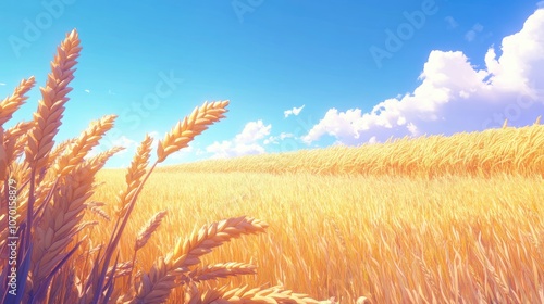 Vibrant field of golden wheat swaying gently under a clear blue sky capturing the essence of mid summer abundance