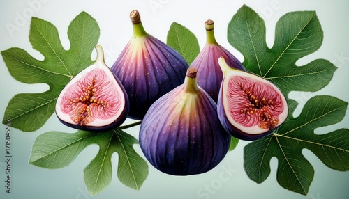 Vibrant Figs On Lush Green Branch With Fresh Leaves For Botanical Art And Design