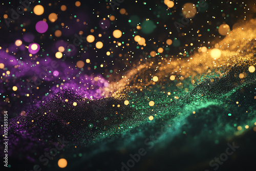 Vibrant firecracker bursts a celebration of green purple and gold in festive splendor