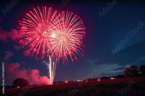 Vibrant fireworks explode in a celebratory night sky, signifying victory , show, sky