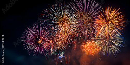 Vibrant fireworks exploding in the night sky, illuminating the darkness with a dazzling display of color and light