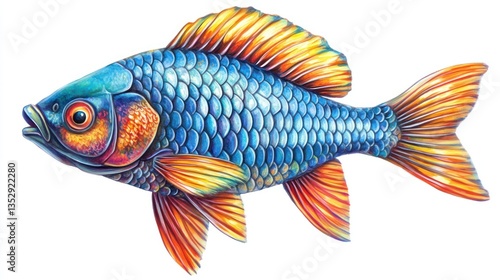 Vibrant Fish Illustration with Detailed Scales and Colorful Fins Perfect for Nature and Artist