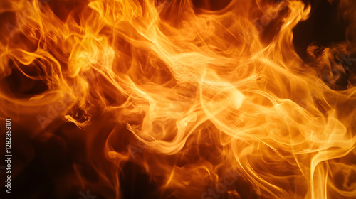 Vibrant flames filling the scene with fiery orange and yellow hues, creating an intense heat and glow