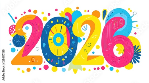 Vibrant Flat Design Illustration of Colorful 2026 Numbers with Playful Elements and Shapes for Creative Projects