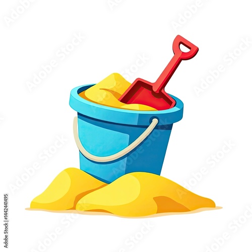 Vibrant Flat Vector Illustration of Beach Sand Bucket and Shovel