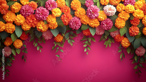 Vibrant floral arrangement against a pink backdrop.