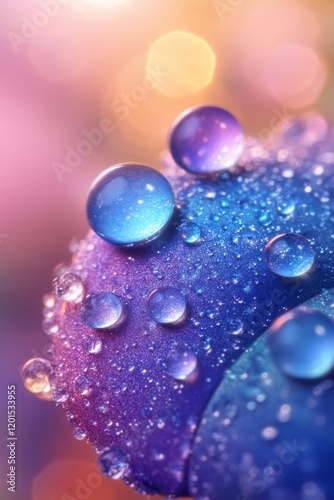 Vibrant Flower Water Droplet Close-Up, Macro Photography Of Purple Blossom With Sparkling Waterdrops