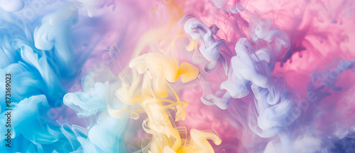 Vibrant Fluid Art: Colorful Smoke Swirls in Pink, Blue, and Yellow Hues