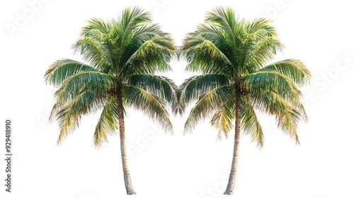 Vibrant foliage two big tree Coconut isolated on white background Evergreen palm tree for design Tropical colorful exotic lush plant Green leaf garden decor Forest wood summer beach se : Generative AI