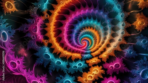Vibrant Fractal Spiral Abstract Digital Artwork Abstract Background