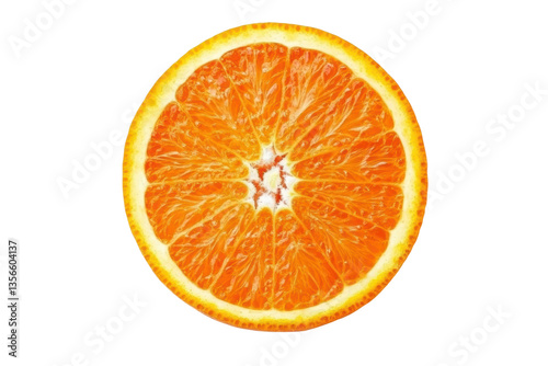 Vibrant fresh orange slice with juicy pulp on black background, cut out