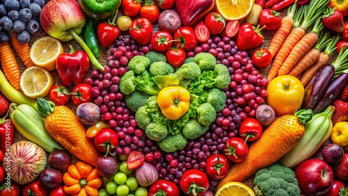 Vibrant Fruit & Veggie Heart Macro Photography: Healthy Eating Concept Stock Photo