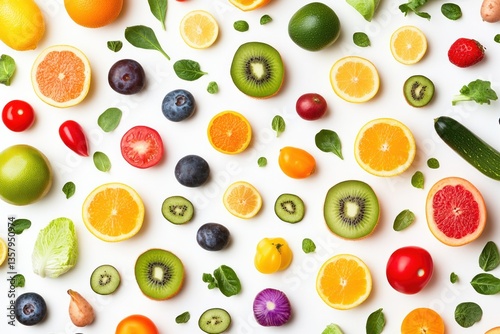 Vibrant Fruit And Vegetable Assortment Arranged On White Background